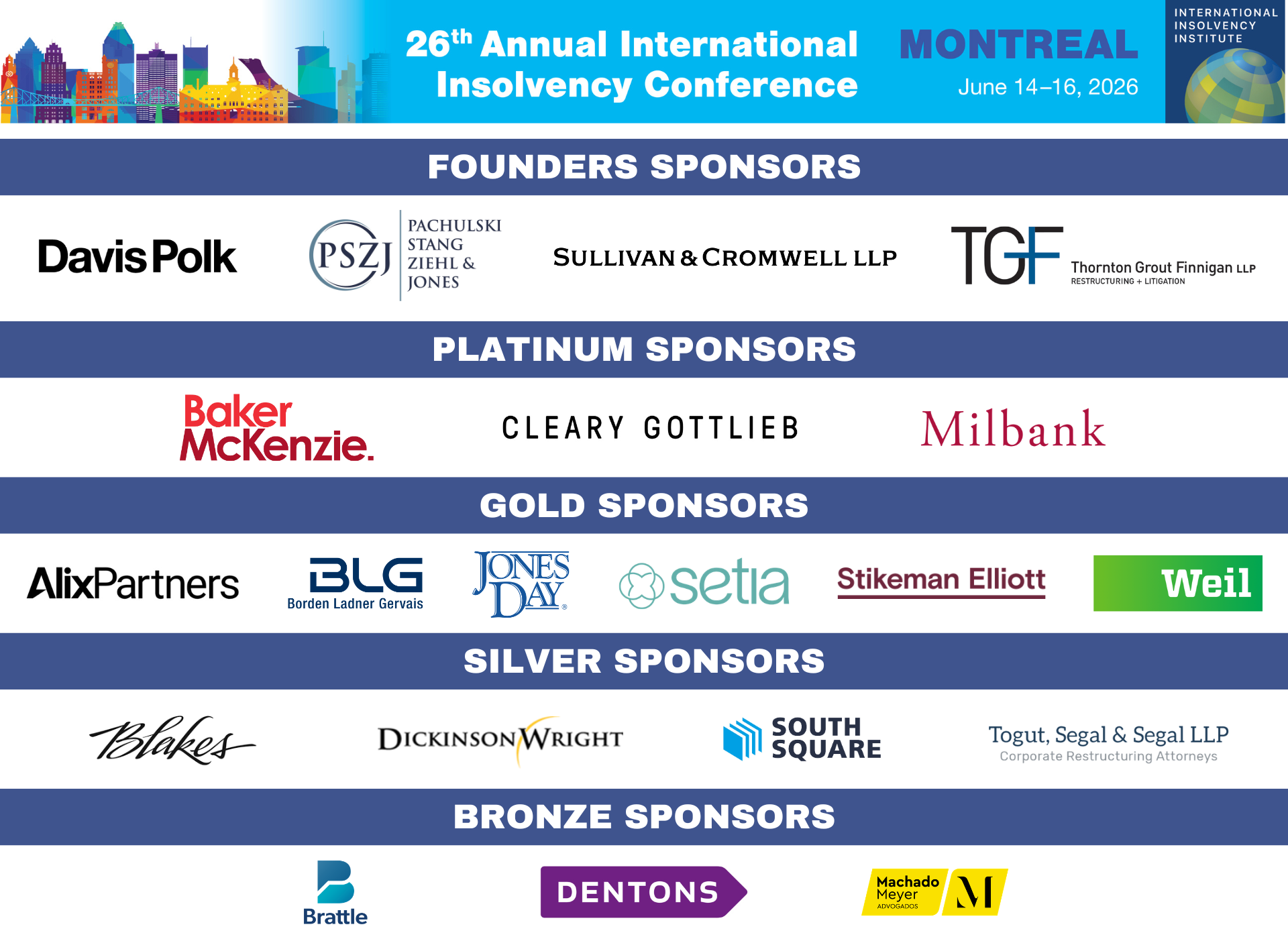 We hope you and your colleagues will join us in Montreal for a spectacular 26th Annual International Insolvency Conference.